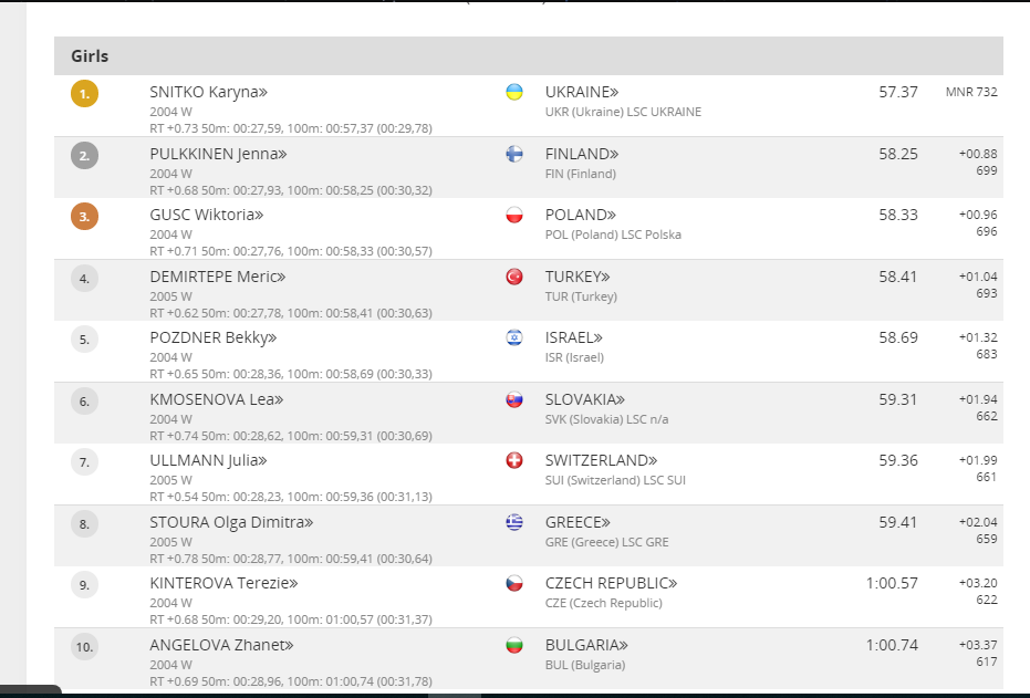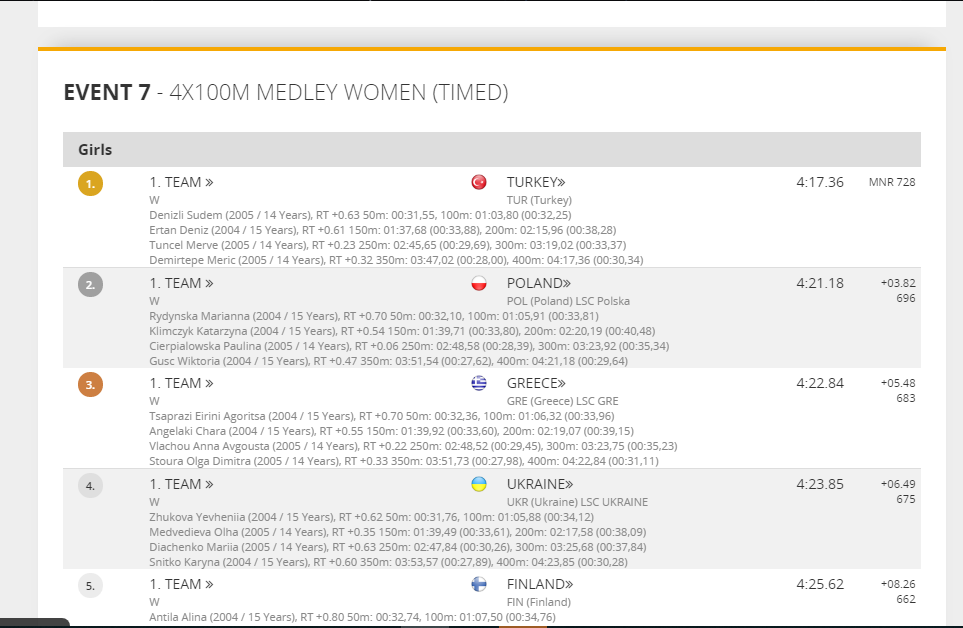 Χάλκινο μετάλλιο για την Όλγα Στούρα με την σκυταλοδρομία 4Χ100μ. Μικτής Ομαδικής Γυναικών και επίδοση 04:22.84