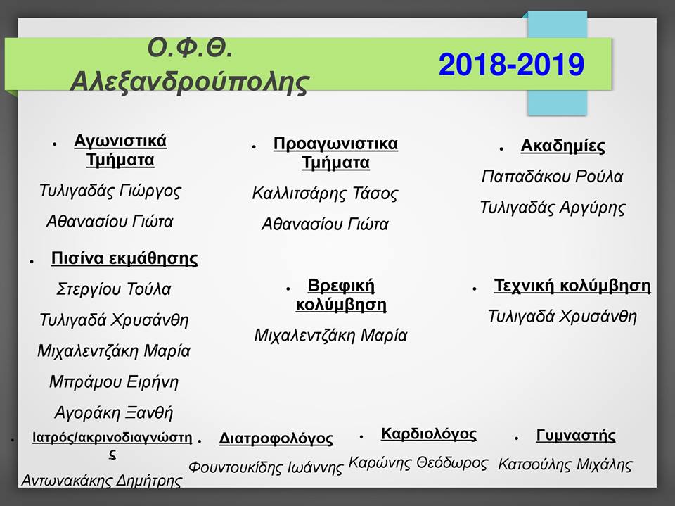 Η ομάδα του ΟΦΘΑ σας περιμένει για πληροφορίες και εγγραφές από τις 3 Σεπτεμβρίου στο γραφείο του συλλόγου στο κολυμβητήριο.