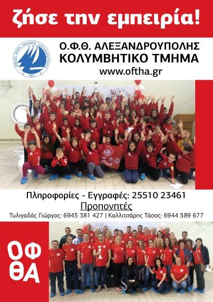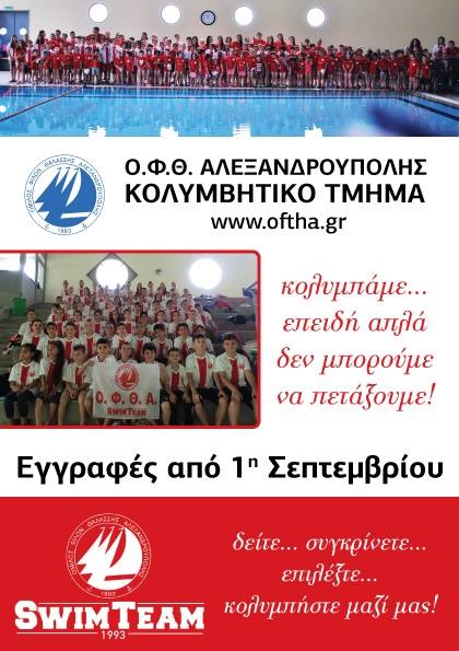 Από σήμερα Δευτέρα 24 Αυγούστου μας βρίσκετε στο γραφείο του ΟΦΘΑ στο νέο κολυμβητήριο από τις 18.00 – 21.00,τηλ...