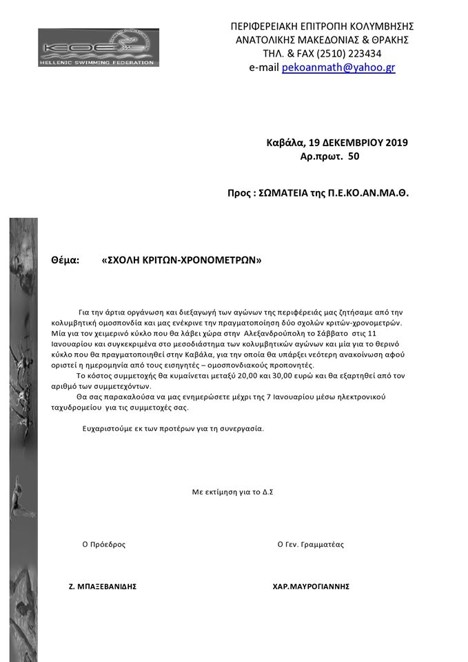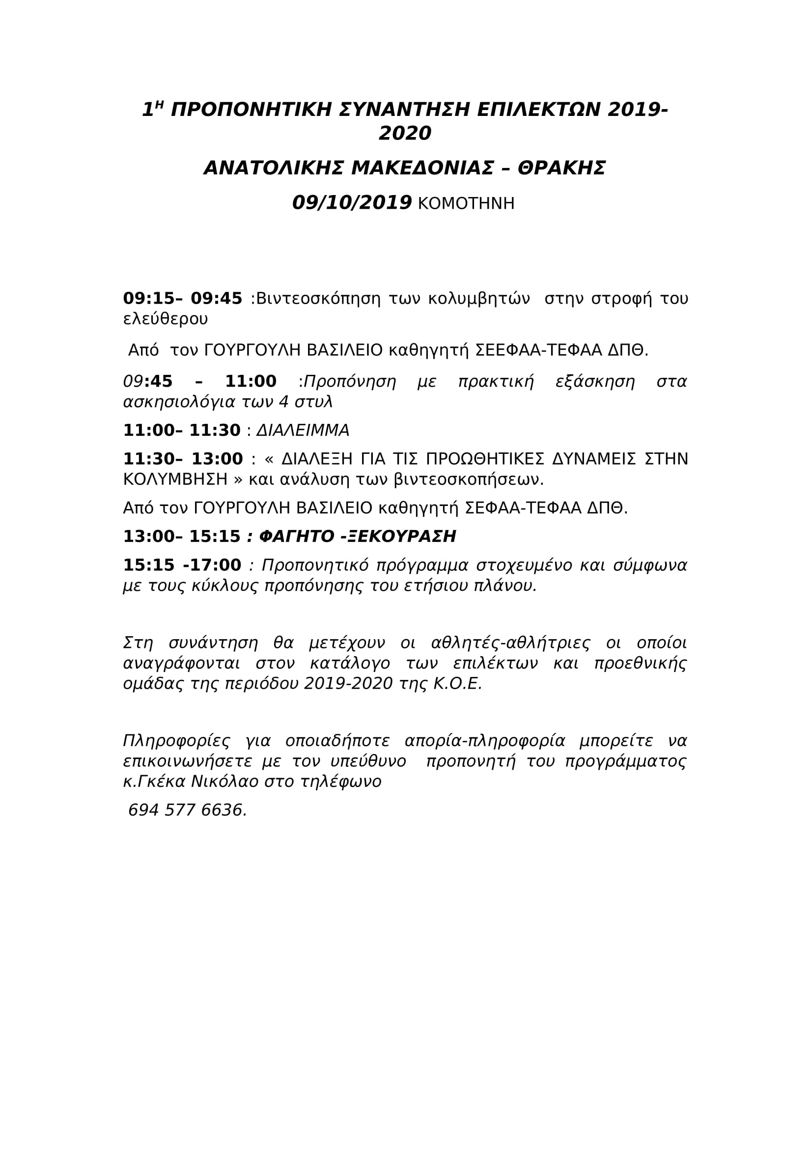 Το Σάββατο 19/10/2019 θα αναχωρήσουν από το Νέο Δημοτικό Κολυμβητήριο Αλεξανδρούπολης “Δημοσθένης Μιχαλεντζάκης“ το Αγωνιστικό και το Προαγωνιστικό ...