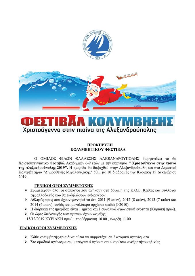 Ο ΟΜΙΛΟΣ ΦΙΛΩΝ ΘΑΛΑΣΣΗΣ ΑΛΕΞΑΝΔΡΟΥΠΟΛΗΣ διοργανώνει το 6ο Χριστουγεννιάτικο Φεστιβ...