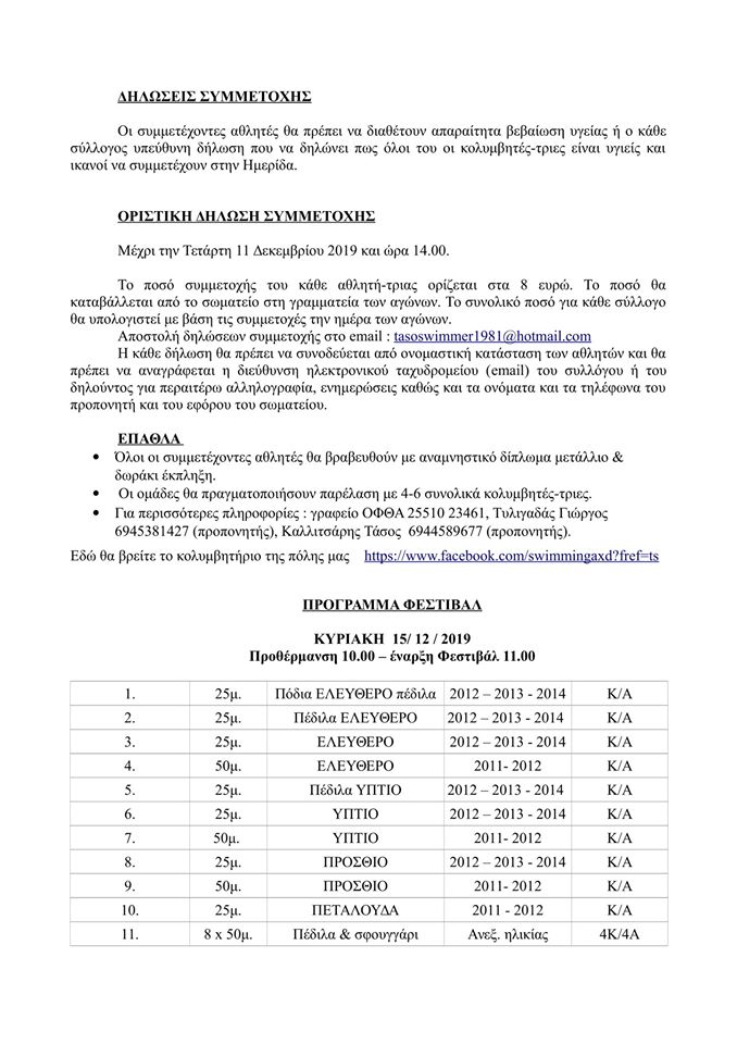 ΠΡΟΚΗΡΥΞΗ ΚΟΛΥΜΒΗΤΙΚΩΝ ΑΓΩΝΩΝ